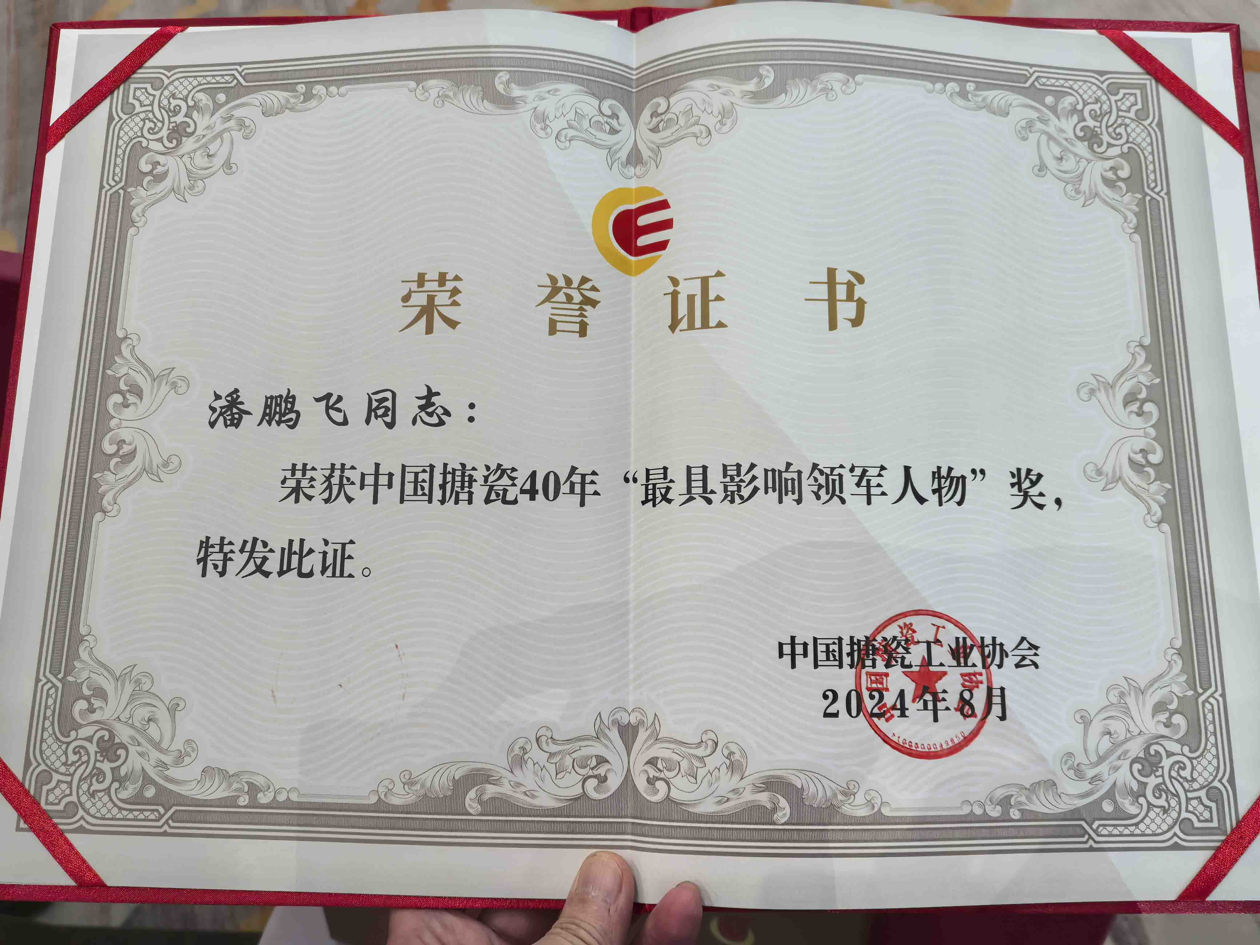 2024年8月 中邦公司董事長潘鵬飛入選中國搪瓷40年最具影響領(lǐng)軍人物