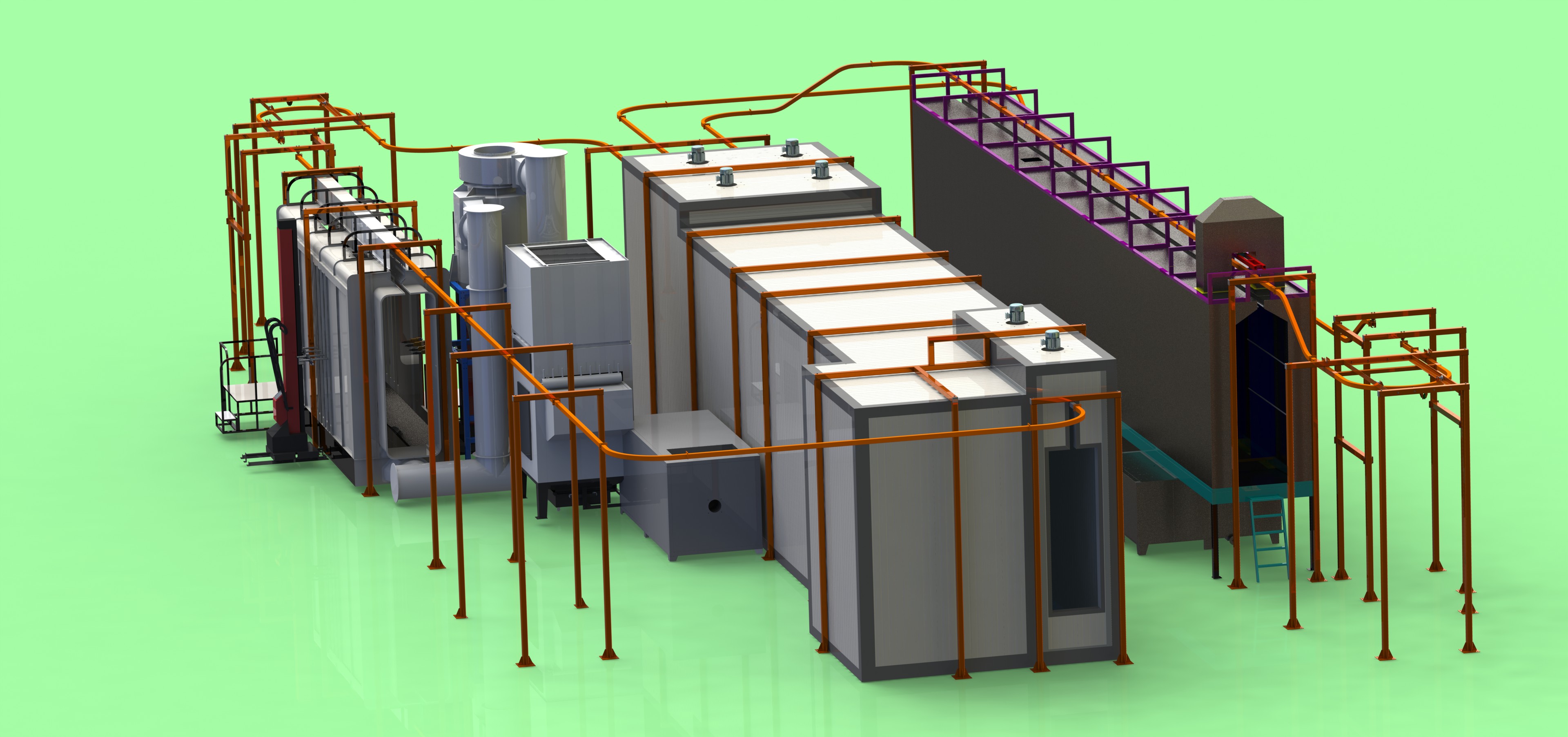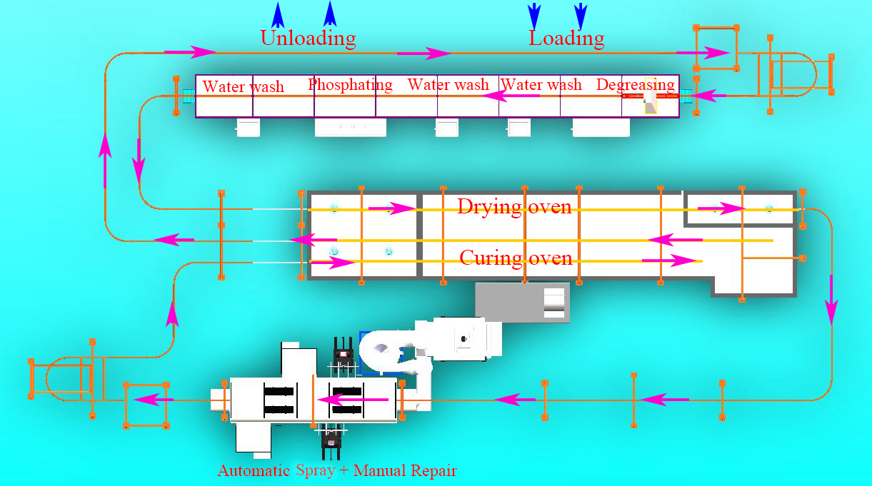 (1) 前處理:除掉工件表面的油污、灰塵、銹跡,并在工件表面生成一層抗腐蝕且能夠增加噴涂涂層附著力的“磷化層”或者“硅烷層”。